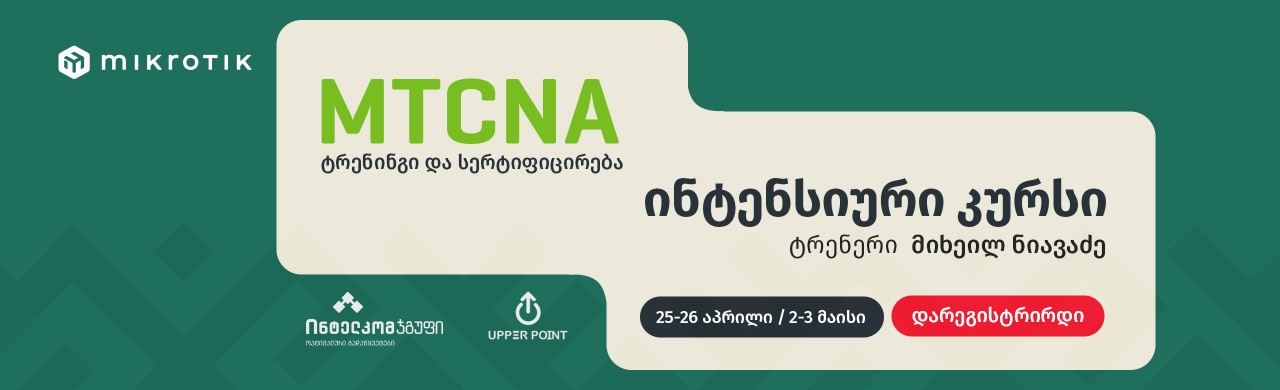 MikroTik Certified Network Associate (MTCNA) ტრენინგი და სერტიფიცირება - ინტენსიური